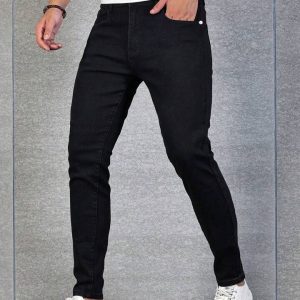 Jeans de Campana Negros para Hombre de Corte Rotos