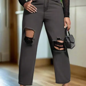 Jeans Grises Oscuro Rotos para Mujer de Tallas Extras – PDMX