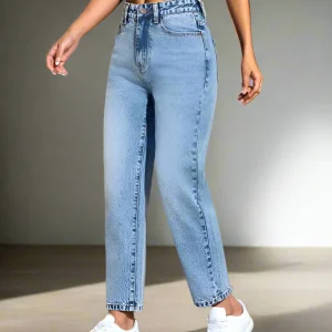 Jeans Mom Azules Cielo para Mujer